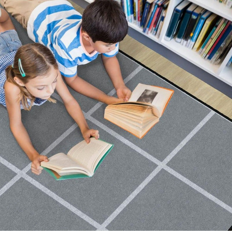 The Misty River Classroom Seating Rug brings calm to classrooms with gray squares separated by off-white dividing lines. Perfect for keeping children in their own spaces during morning attendance, lesson plans and games.