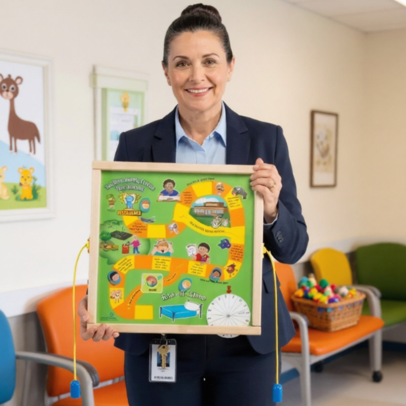 This wall-mounted toy encourages kids to think about the consequences of their actions, promoting the importance of balanced meals, regular exercise, and good daily habits.